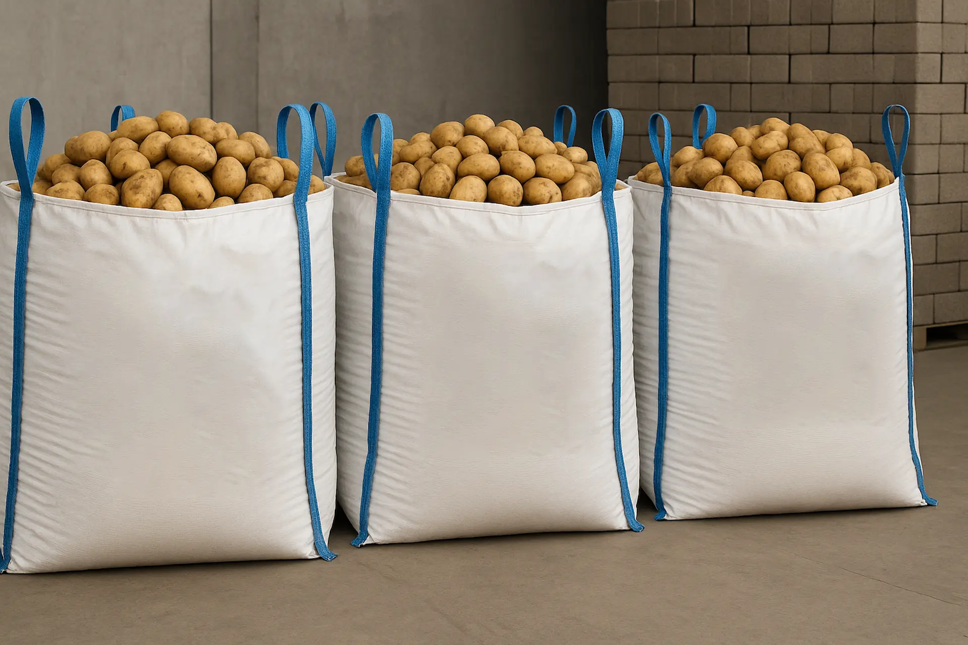 Ofrecemos patatas para uso industrial, perfectas para procesado y pelado, en formatos de gran volumen como sacas de 1000 kg.